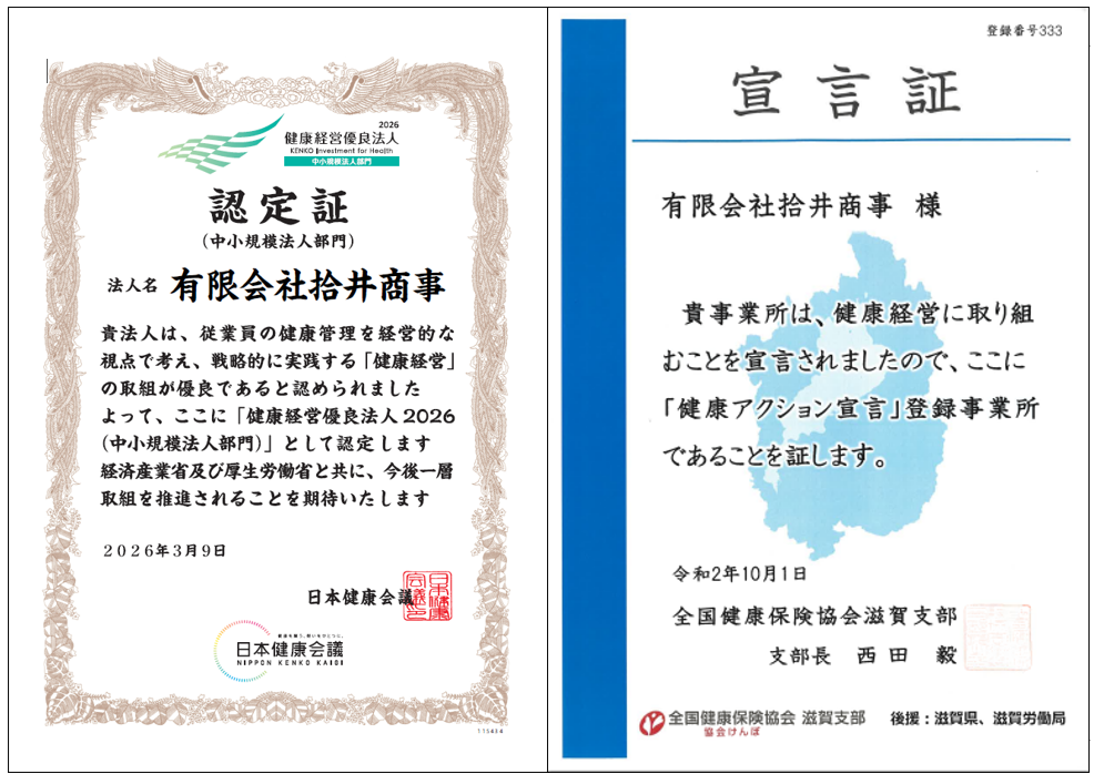 - 大津市際川において有限会社拾井商事を創業 軽貨物運送事業免許取得